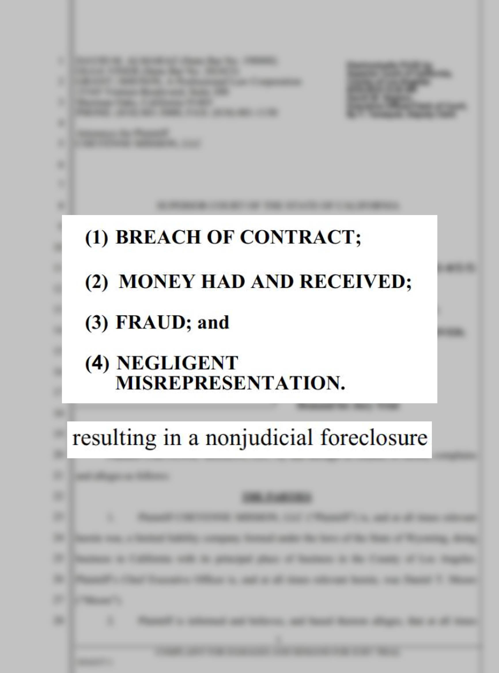 Plaintiff Cheyenne Mission alleges they loaned Andrew Nowaczek $690,300 secured against a property, and instead of repaying the loan, Andrew took out another loan against the property in violation of their agreements, kept the money from both loans - totalling over $1,000,000 - and just let the property be foreclosed. Andrew then allegedly used a chain of transactions and new business entities to reacquire the property out of foreclosure for himself, removing his former investors from the equation, then selling it - keeping the proceeds and the investor's money to boot.