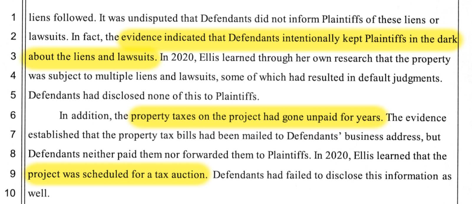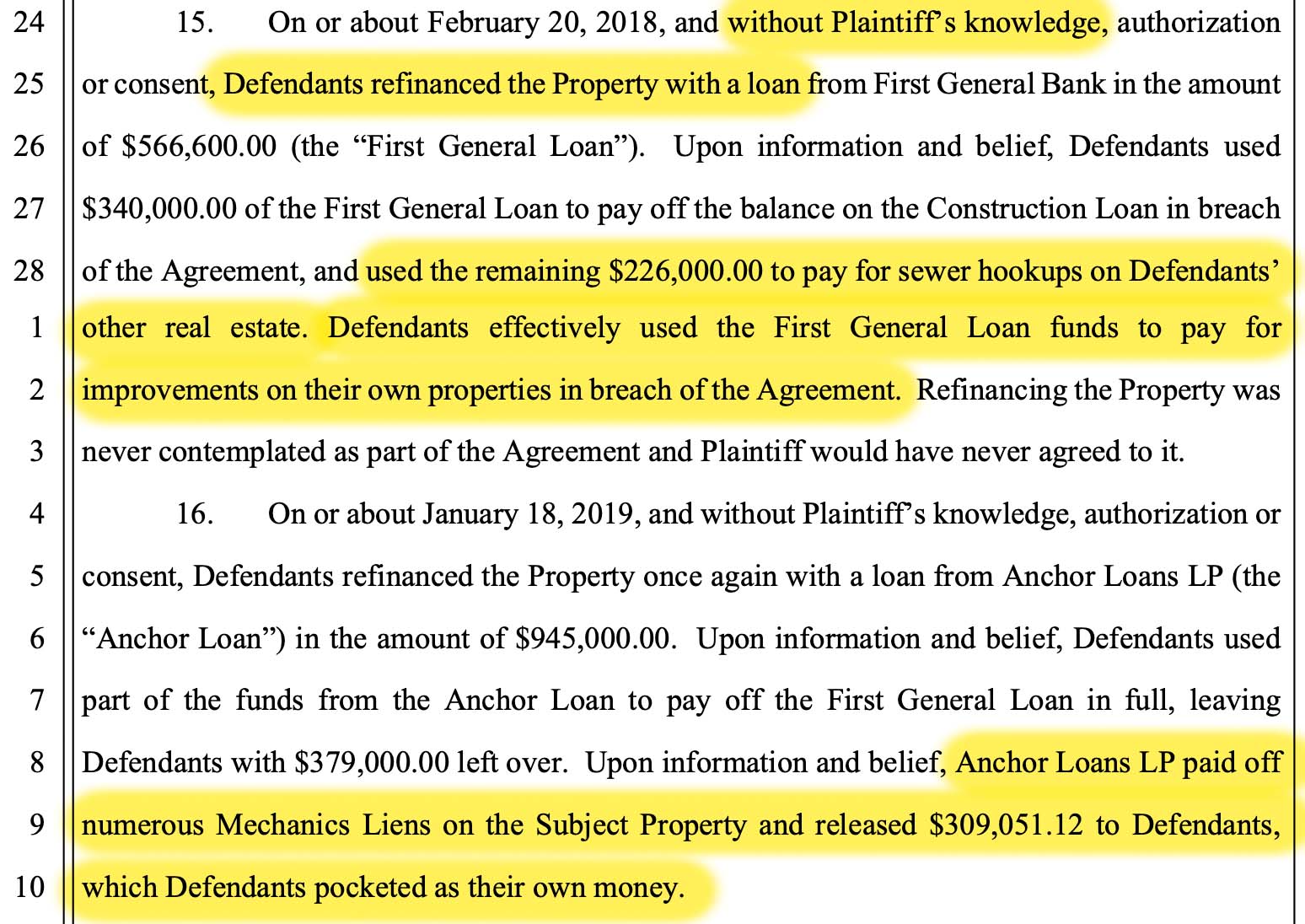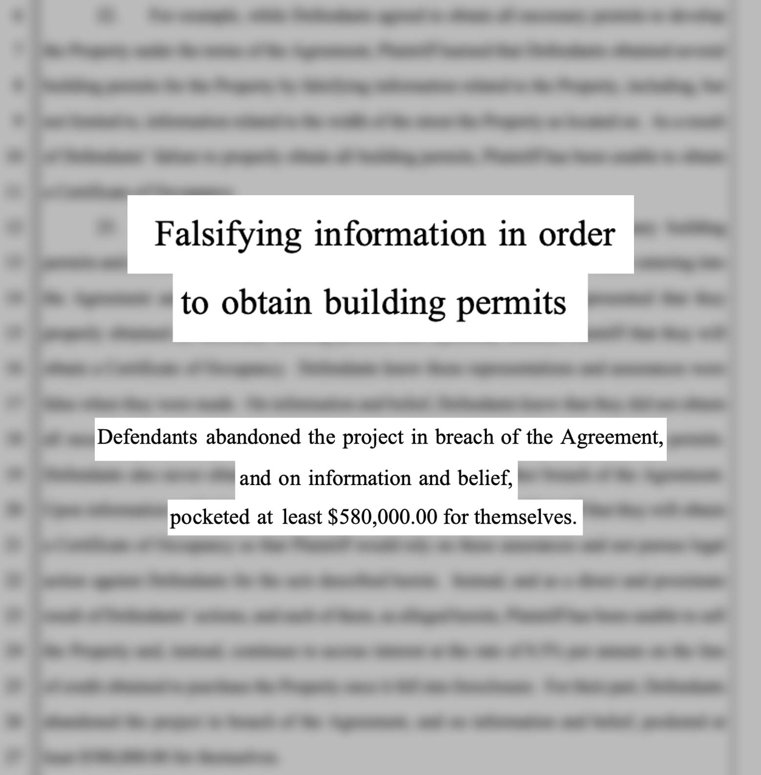 As alleged in many of these lawsuits and judgments, Andrew misappropriated funds from other projects and investors for years. On information and belief, 10056 Wornom Ave is, in part, what he spent those misappropriated funds on. Andrew raided the coffers of several projects along the way to achieve his goal, even bankrupting some of them, leaving investors and creditors in the wind. Andrew continues to be sued by his victims as of the fall of 2025 while he lives in a house he allegedly built with their money.