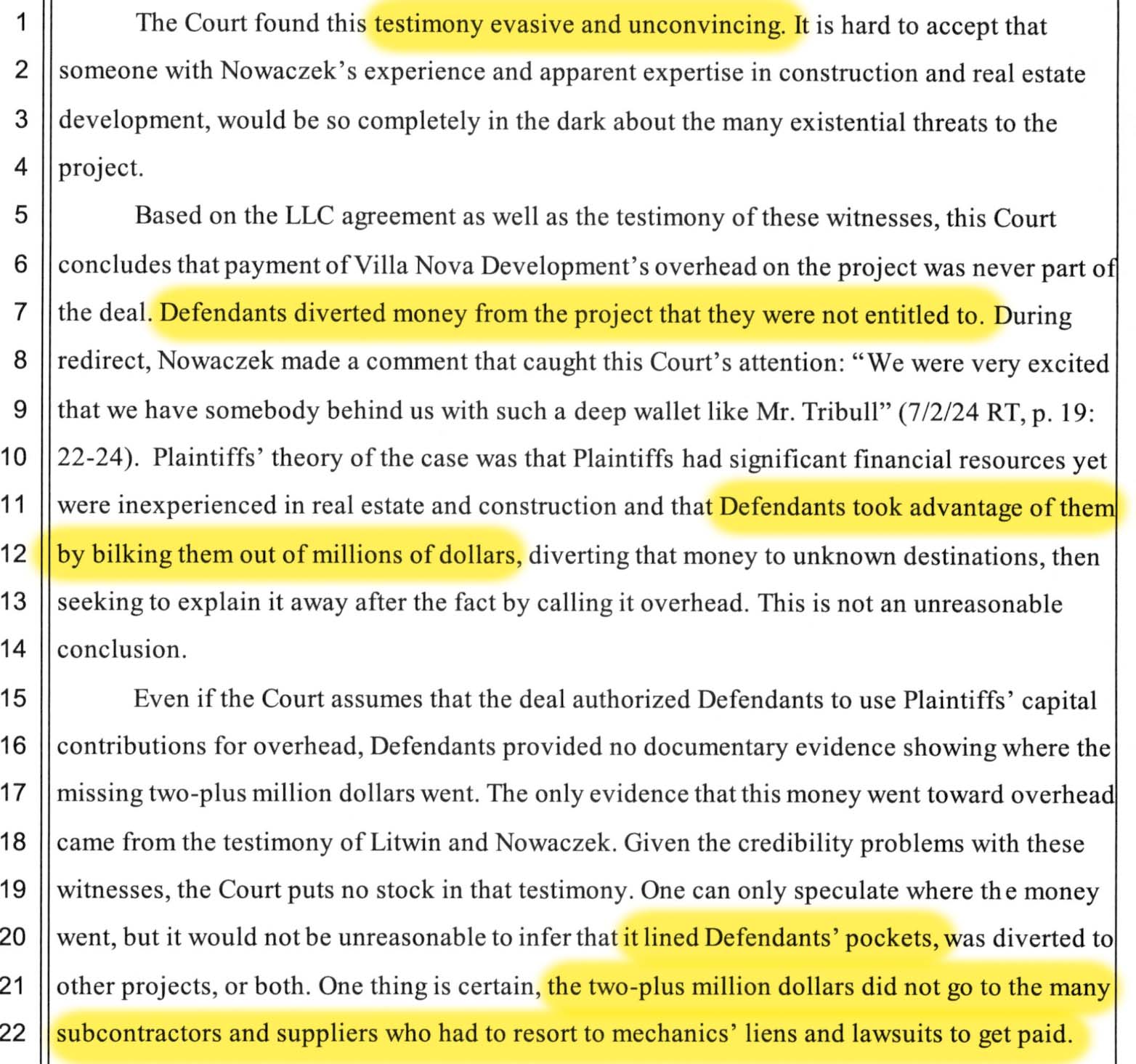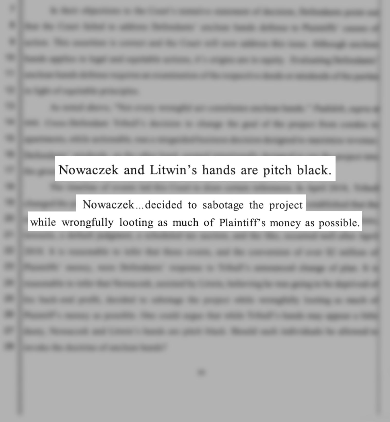Judge Jared P. Moses eviscerates "evasive" and "unconvincing" Andrew Nowaczek for "wrongfully looting as much of Plaintiff's money as possible" in a multi-million dollar decision.